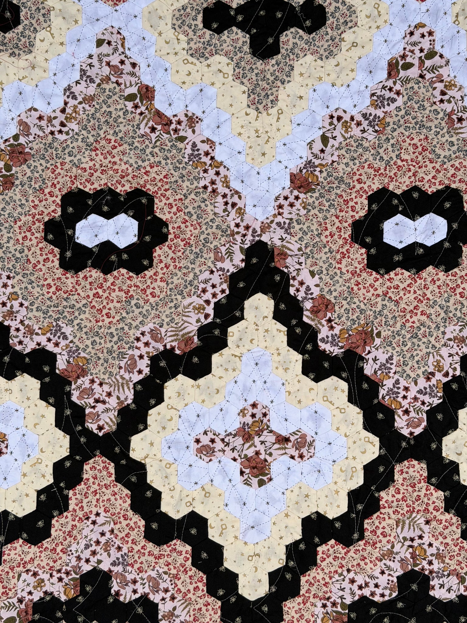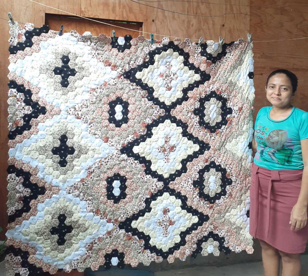 Beautifully hand-stitched hexagon quilt. Majority of fabric is donated and proceeds employ women living in poverty in the "bordos" of San Pedro Sula, Honduras