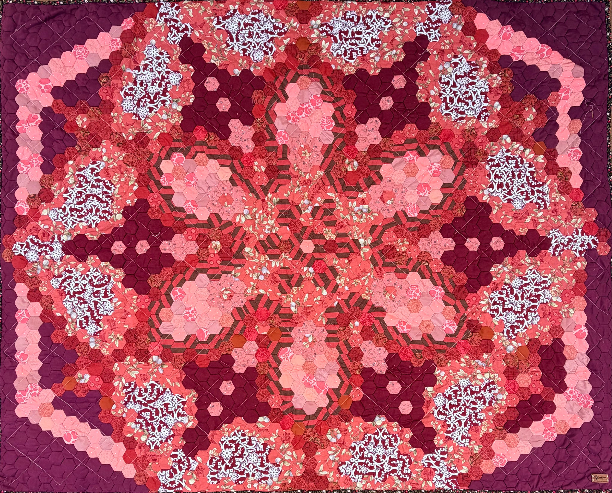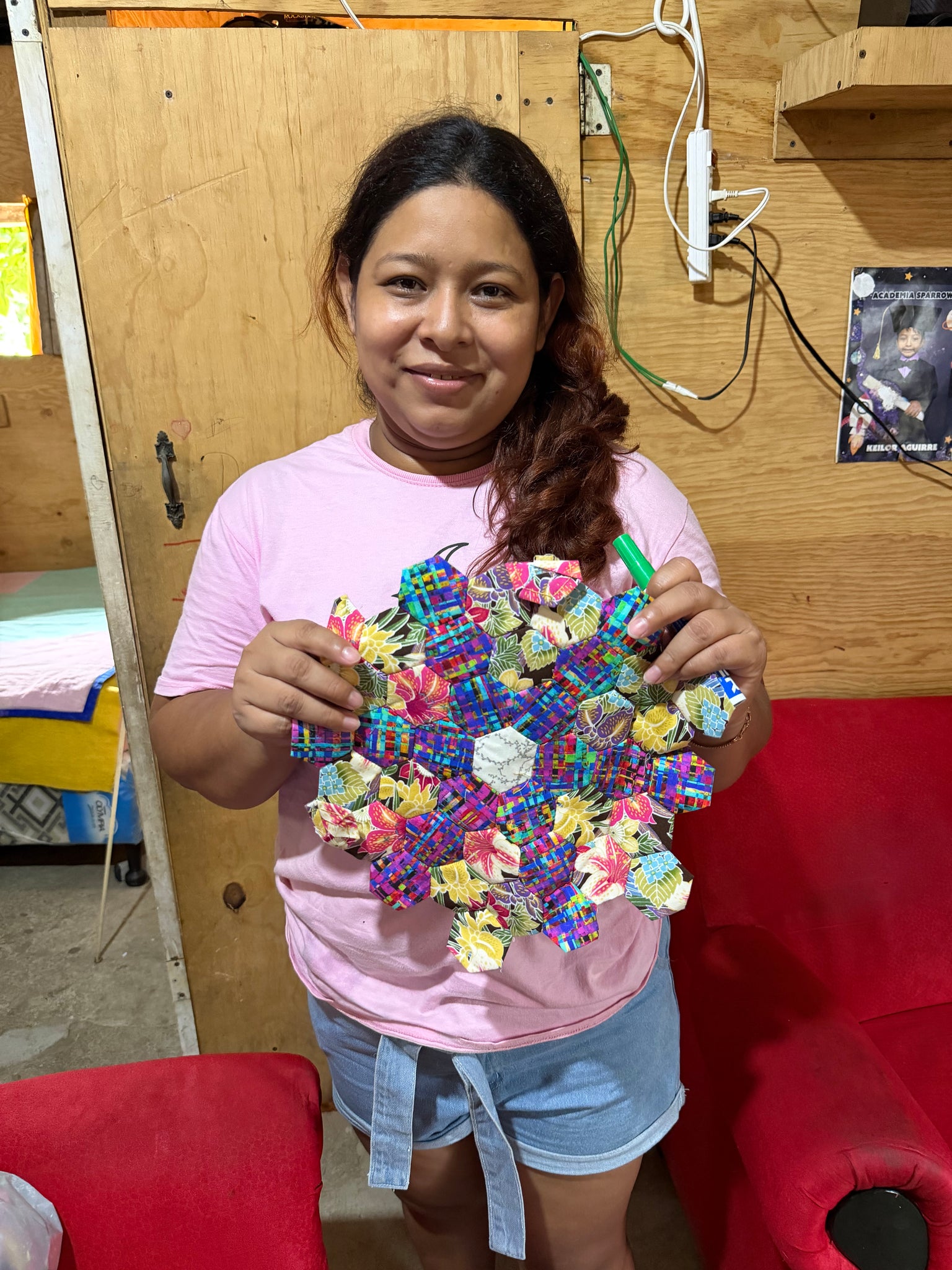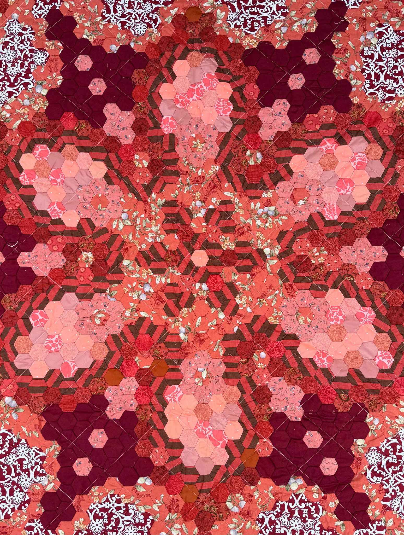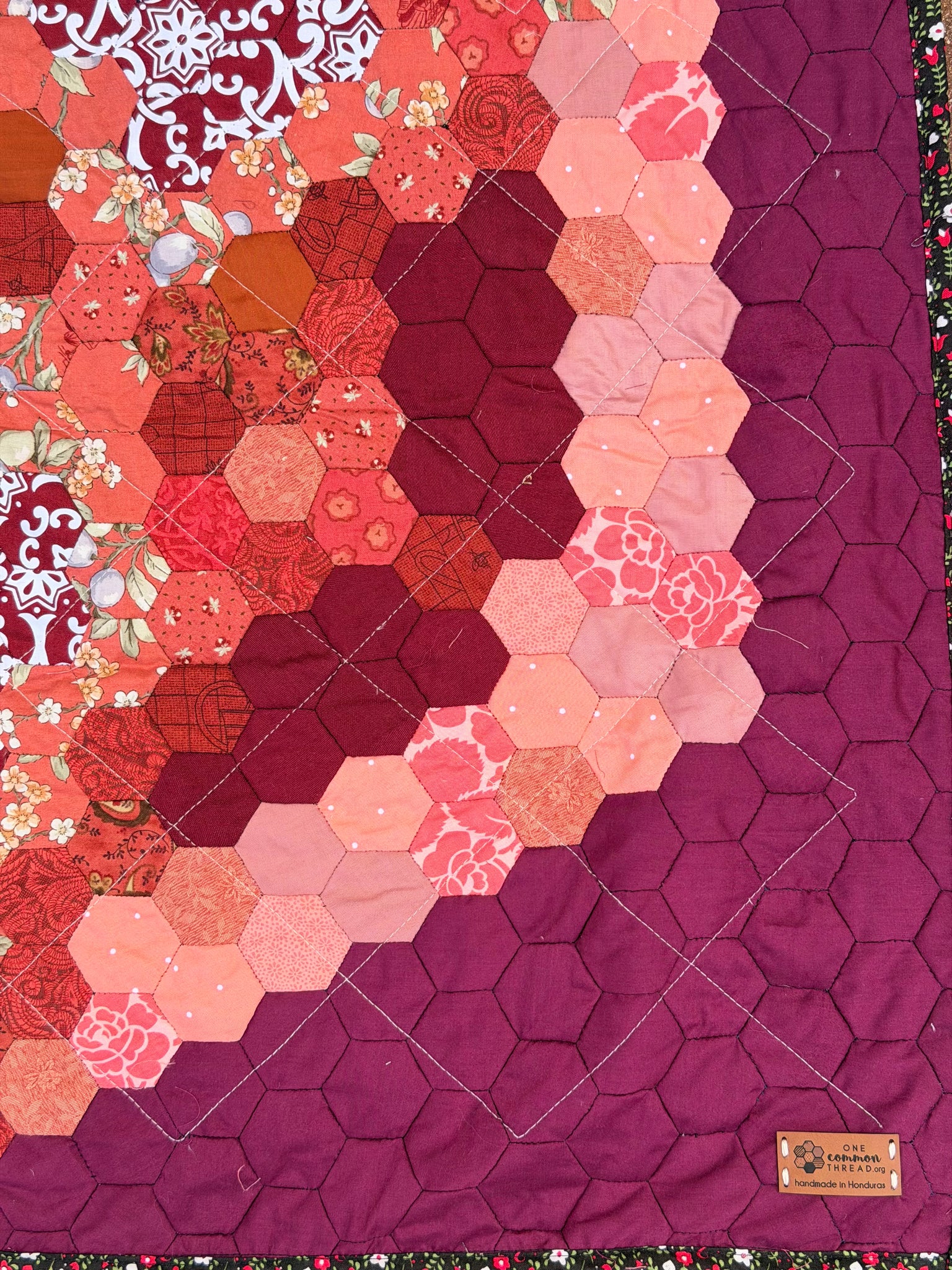Beautifully hand-stitched hexagon quilt. Majority of fabric is donated and proceeds employ women living in poverty in the "bordos" of San Pedro Sula, Honduras