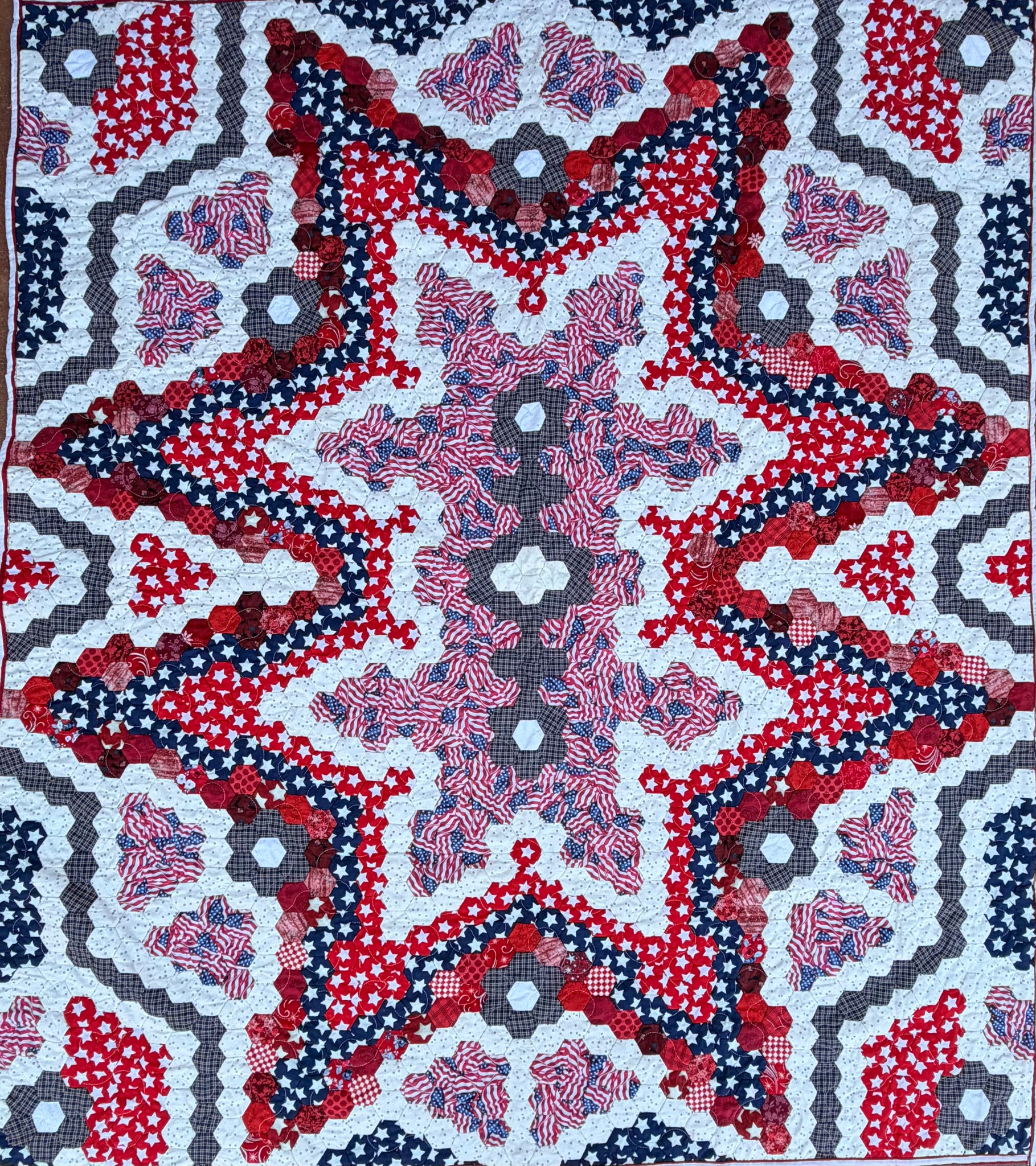Johana’s beautiful quilt showcases her incredible skill and attention to detail, featuring a stunning repetitive diamond hexagon design. The thoughtful combination of fabrics and elegant mix of colors creates a sense of harmony and sophistication, resulting in a clean and visually captivating piece. Her craftsmanship is a reflection not only of her artistry but also of her determination to rise above hardship and provide for those she loves.
