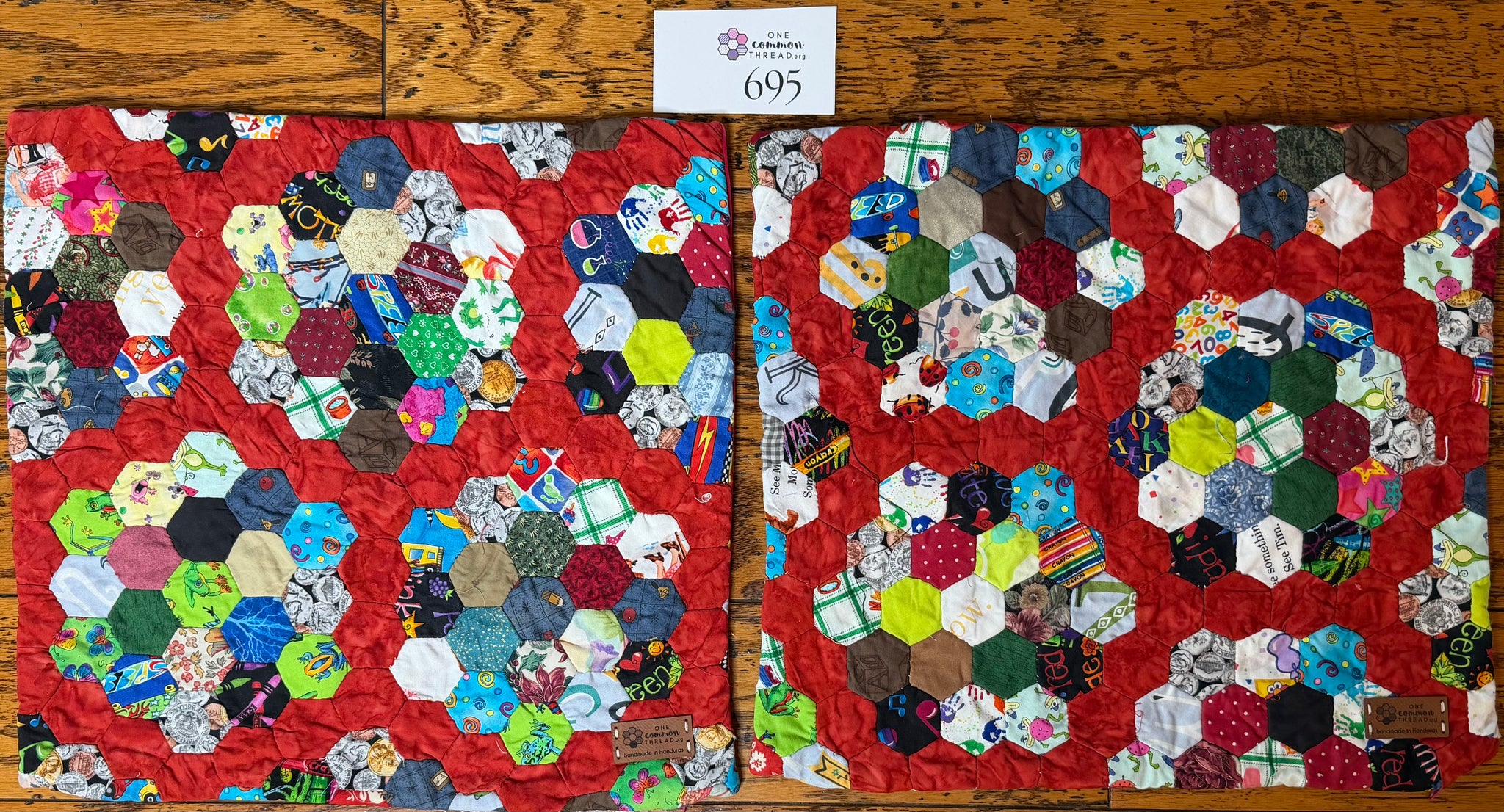 *Each hexagon is made from scrap material, but contains certain predominant colors. Majority of fabric is 100% cotton.