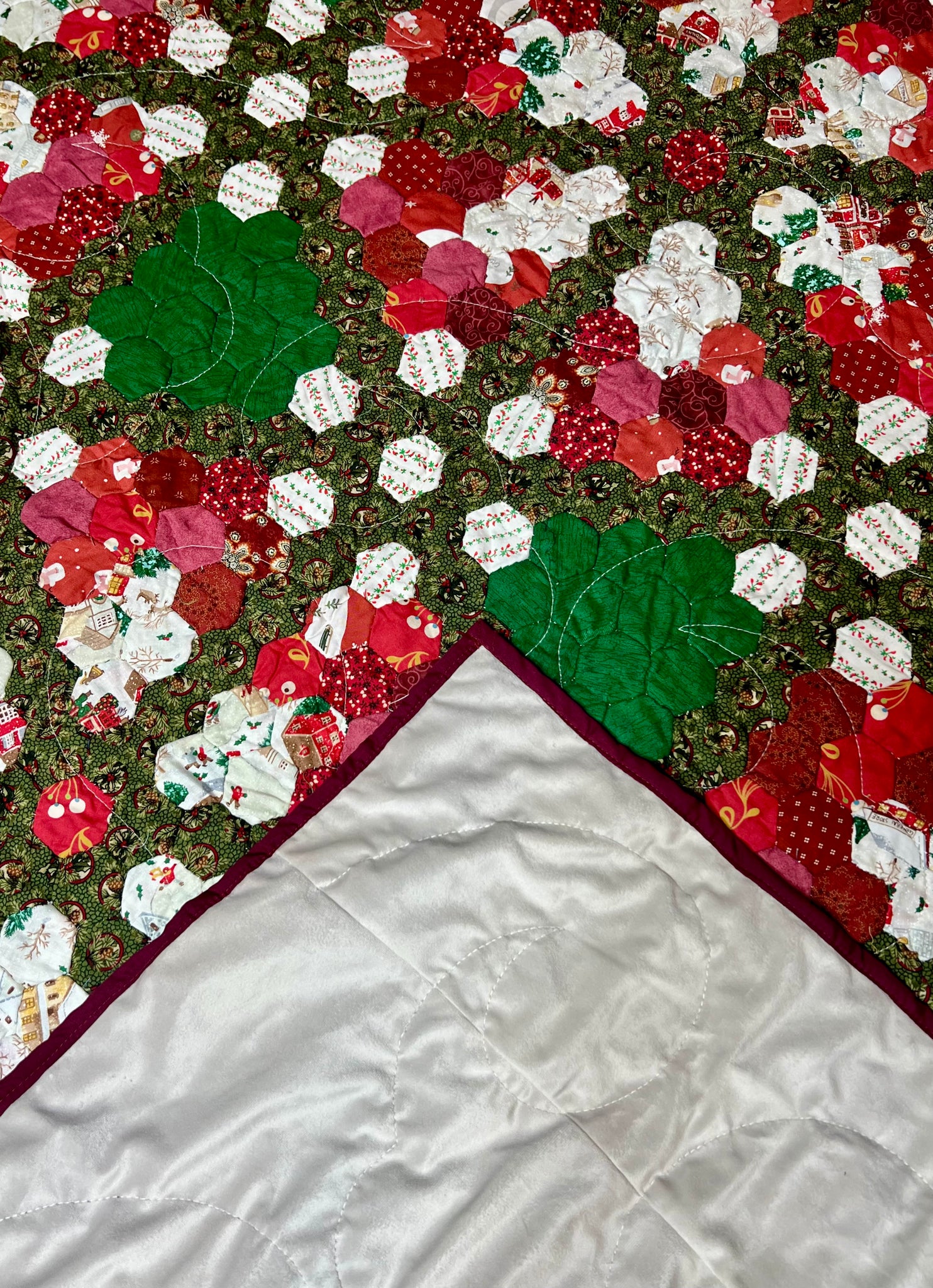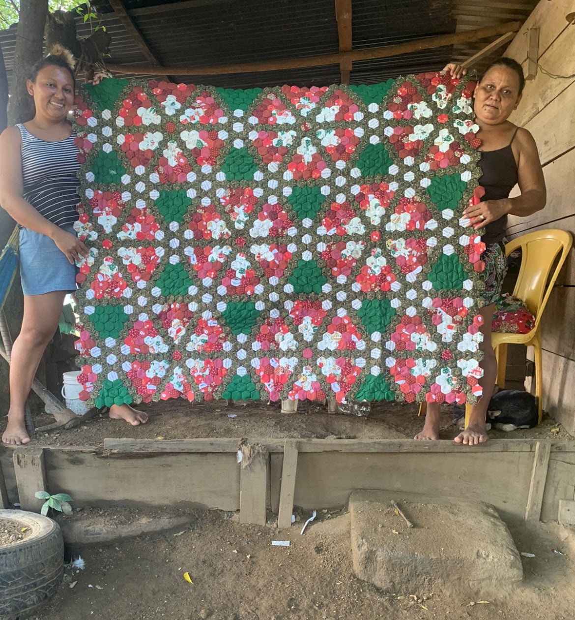 Beautifully hand-stitched hexagon quilt. Majority of fabric is donated and proceeds employ women living in poverty in the "bordos" of San Pedro Sula, Honduras